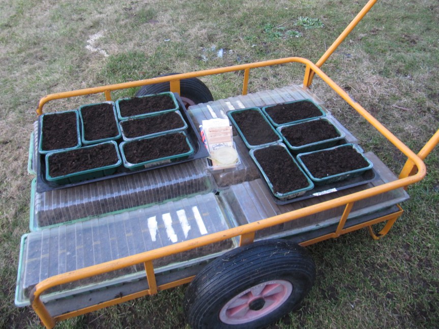 Det går faktiskt att så på friland också. Där har jag sått morot, svartrot, persilja och dill och lagt en fiberduk över. Det är ingen garanterad hundraprocentig uppkomst på den sådden, men med lite tur kan det bli tidiga och bra plantor som redan hunnit etablera sig när försommartorkan sätter in. Och i annat fall går det att kompletteringsså senare.