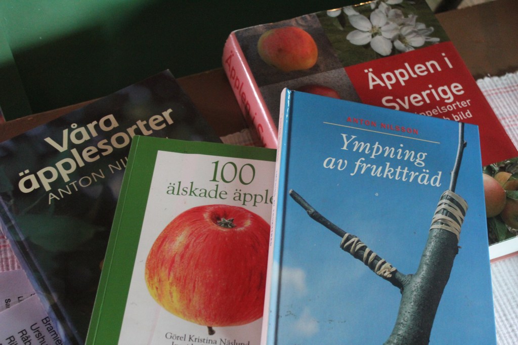 Det går inte att så äppelkärnor och få samma sorts äpple som ursprungsträdet, utan enda sättet att föröka en viss sorts äpple är att ympa det – att få en kvist av moderträdet att växa fast på ett nytt träd. Alla äppelträd vi köper är ympade. Under helgens kurs var det fokus på att skapa helt nya små träd, men det går även bra att ympa på redan uppvuxna träd. Björn visade både hur han skapat helt nya kronor på beskurna stammar av vildapel och ympat in flera sorter i samma träd i trädgården.