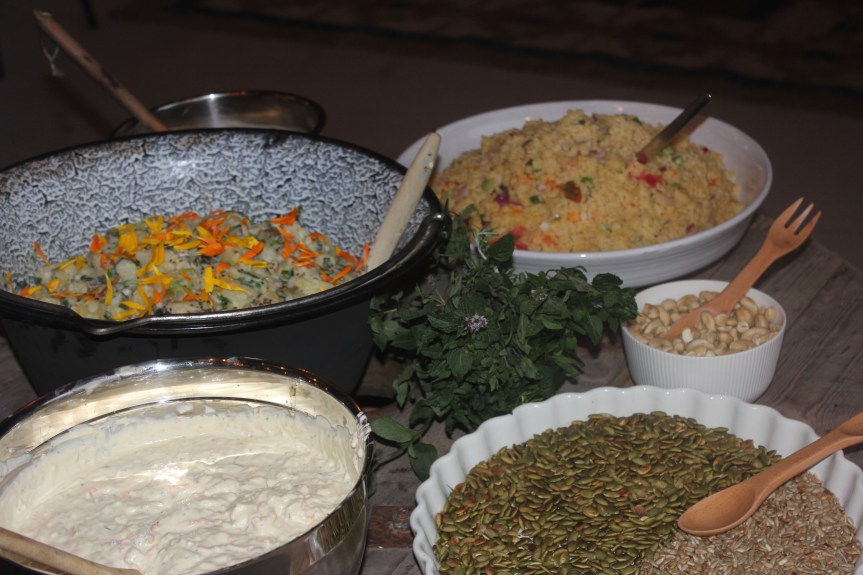 Det blev en smakrik och mättande buffé i olika färger, smaker, temperaturer och texturer. God och nyttig mat baserad på närproducerade råvaror och baljväxter.