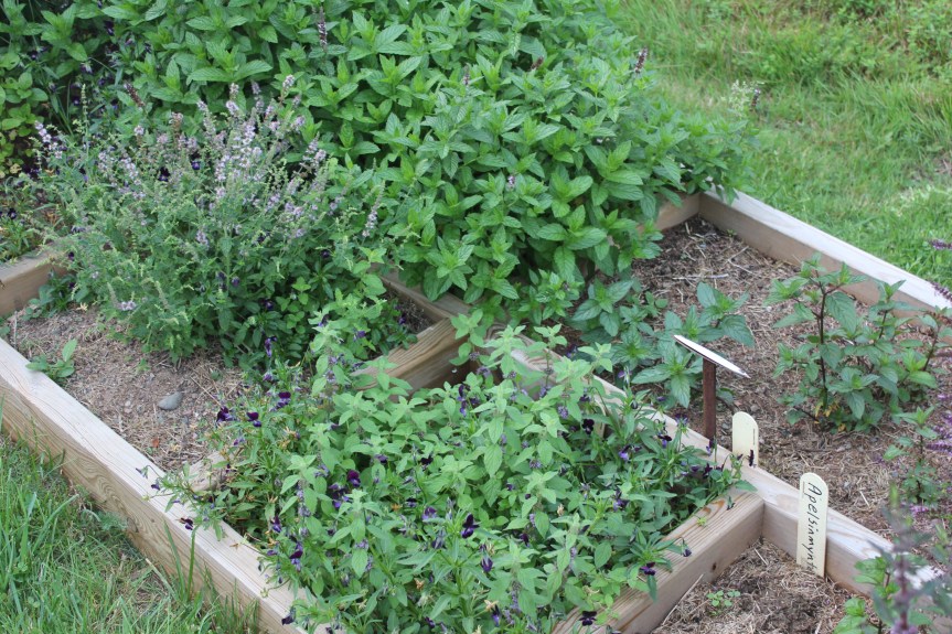 Olika sorters mynta. De har ytliga rötter och växer snällt innanför träramarna.