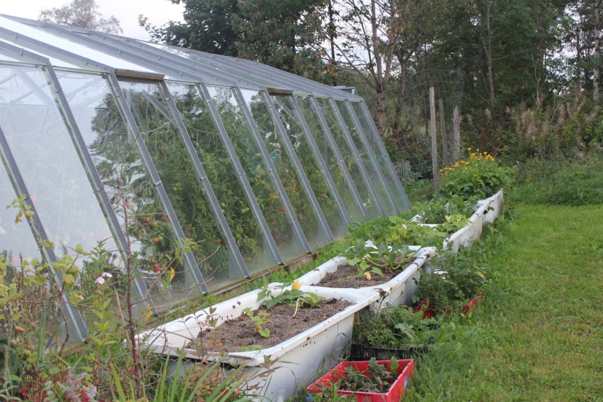 Badkarsodlingen. Här växer bland annat sommarpotatisen.