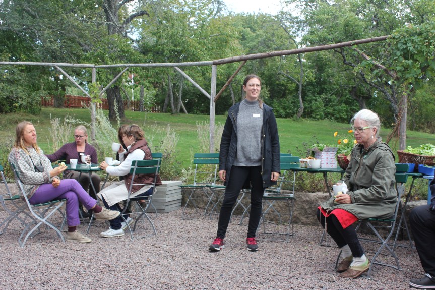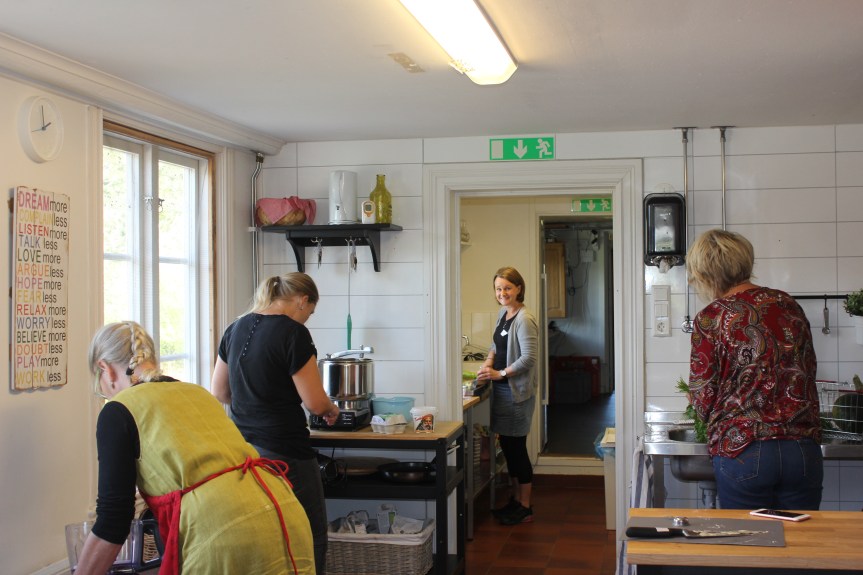 Mitt i arbetet fick kockarna avbryta sig för att fylla på med energi i form av fika, och inspireras av Ann Sellbrinks företagsamhet inom hållbar och hälsosam mat. Hon berättade om sitt nystartade företag Låxbo Lantkök Utbildning och det Leaderstöd hon fått för att utveckla sin verksamhet med utomhusmatlagning, naturupplevelser och samarbeten. Läs mer på Astrid Lindgrens hembygds hemsida under fliken Projektmedel via Leader – Projektdatabas.