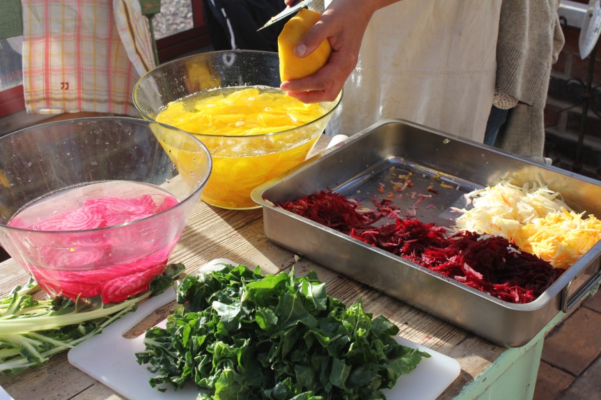 Här skördas piplök, morötter, rödbetor, palsternackor och ätbara blommor.
