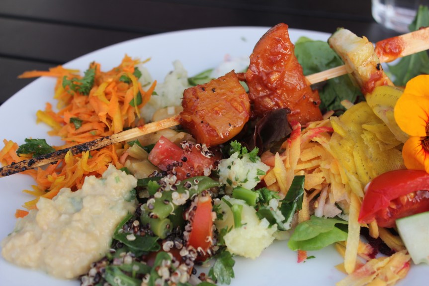 Grillspett. Och så skördesoppa, tzatziki, kikärtsröra…. Rätterna var många!