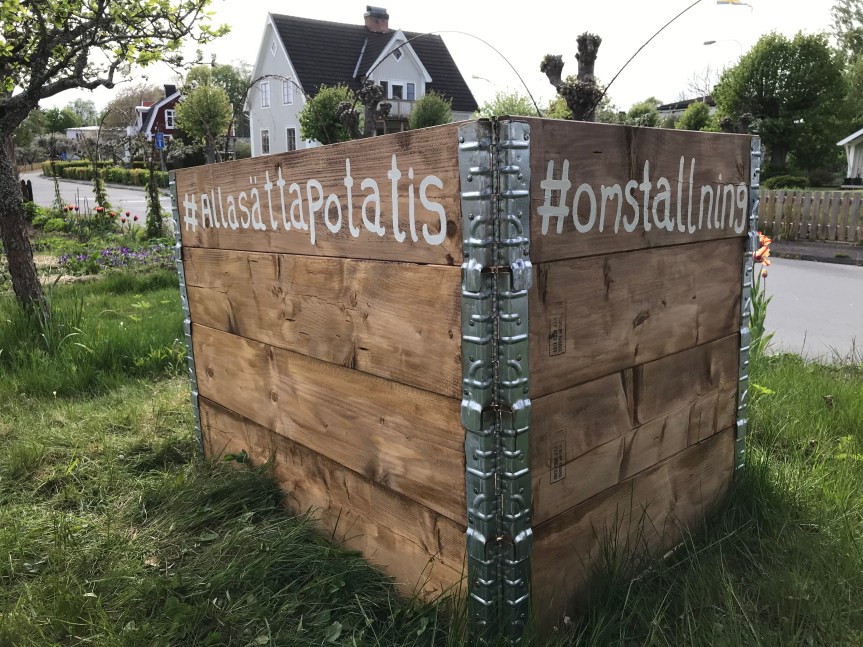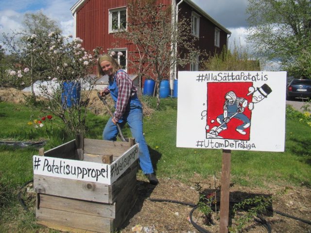 Medan våra politiker tänker på kortsiktiga lösningar som faktiskt förvärrar den övergripande situationen får väl vi småskuttare jobba på de långsiktiga lösningarna och stå för kreativiteten. Aldrig förr har det varit så meningsfullt att odla som just i år. Ju dyrare maten blir i affären, desto mer pengar spar vi på att äta egenodlat. Dessutom är det en solidarisk handling att i år äta mer potatis/rotfrukter och mindre spannmål. I våra trädgårdar kan vi skapa djupa bäddar där vi kan få 10 kg potatis per kvm. I det industriella jordbruket med alla sina dyra insatsmedel är snittskörden bara 2.8 kg/kvm. Beroende på jord och odlingsmetod behövs ca 30-100 kvm för att en familj med två vuxna och två barn ska bli självförsörjande på potatis.