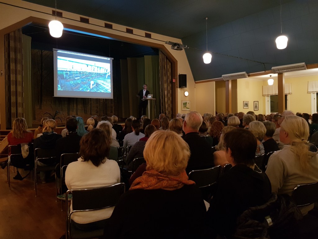 Fullsatt när Farbror Grön föreläste i Frödinge. Skördefest och matlagning Ingebo Hagar. Film från skördefesten hittar du här.