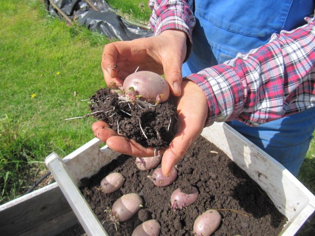Medan våra politiker tänker på kortsiktiga lösningar som faktiskt förvärrar den övergripande situationen får väl vi småskuttare jobba på de långsiktiga lösningarna och stå för kreativiteten. Aldrig förr har det varit så meningsfullt att odla som just i år. Ju dyrare maten blir i affären, desto mer pengar spar vi på att äta egenodlat. Dessutom är det en solidarisk handling att i år äta mer potatis/rotfrukter och mindre spannmål. I våra trädgårdar kan vi skapa djupa bäddar där vi kan få 10 kg potatis per kvm. I det industriella jordbruket med alla sina dyra insatsmedel är snittskörden bara 2.8 kg/kvm. Beroende på jord och odlingsmetod behövs ca 30-100 kvm för att en familj med två vuxna och två barn ska bli självförsörjande på potatis.