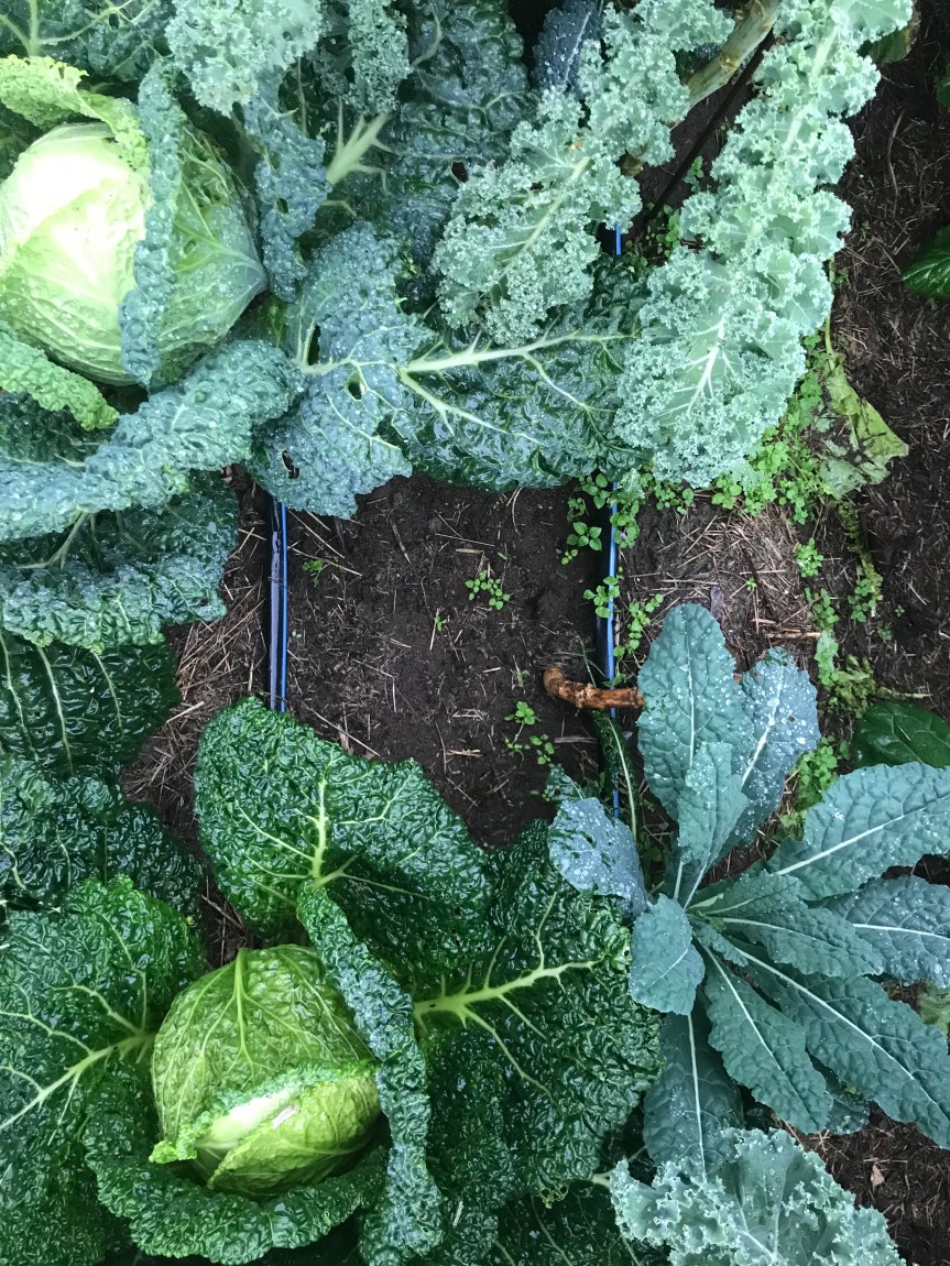 För mig var det ett stort lyft att få ut hönsen ur växthuset. Sedan februari har plantuppdragning och höns fått samsas där inne. Plantorna skyddas av nät som till slut blir väldigt dammiga av all torr jord som hönsen dammar upp. Det var skönt att kunna ta bort näten, skaka ur dammet, komplettera sådden, och faktiskt också kunna skörda de första salladsbladen!
